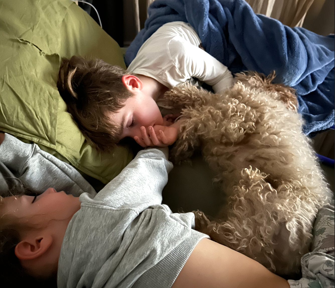 I try and live in the moment, like they are, and not pre-mourn the eventual loss of this beautiful bed nest that we all choose to inhabit. I have always been partial to living in bed, even before I was forced to because of my disability. I do my best work in bed, writing, drawing. I have had wild experiences in bed, but this place is no longer the site of sexual tension but of complete maternal love.